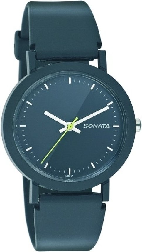 Grey Dial Black Plastic Strap Watch sonata 77072pp04