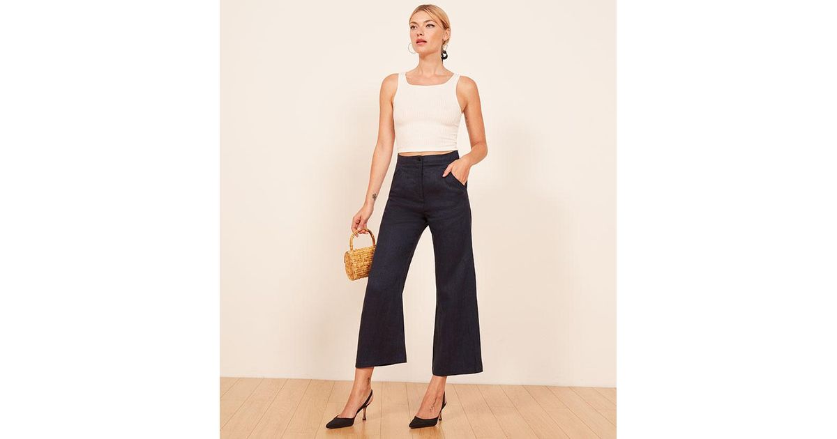 Reformation Linen Jaylene Pant in Navy reformation jaylene pant