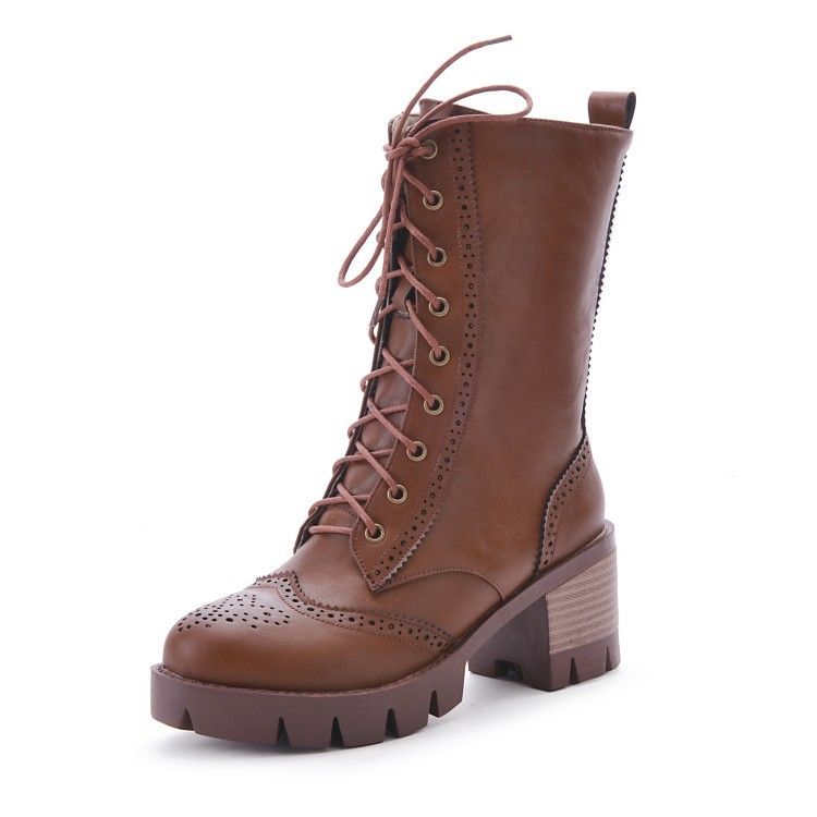 GOXPACER Mid Calf Women Boots Brogue cheap ladies boots online