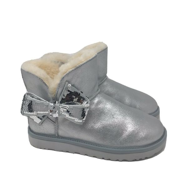 Womens Metallic Silver Mini Sequin Bow ugg sequin bow boots