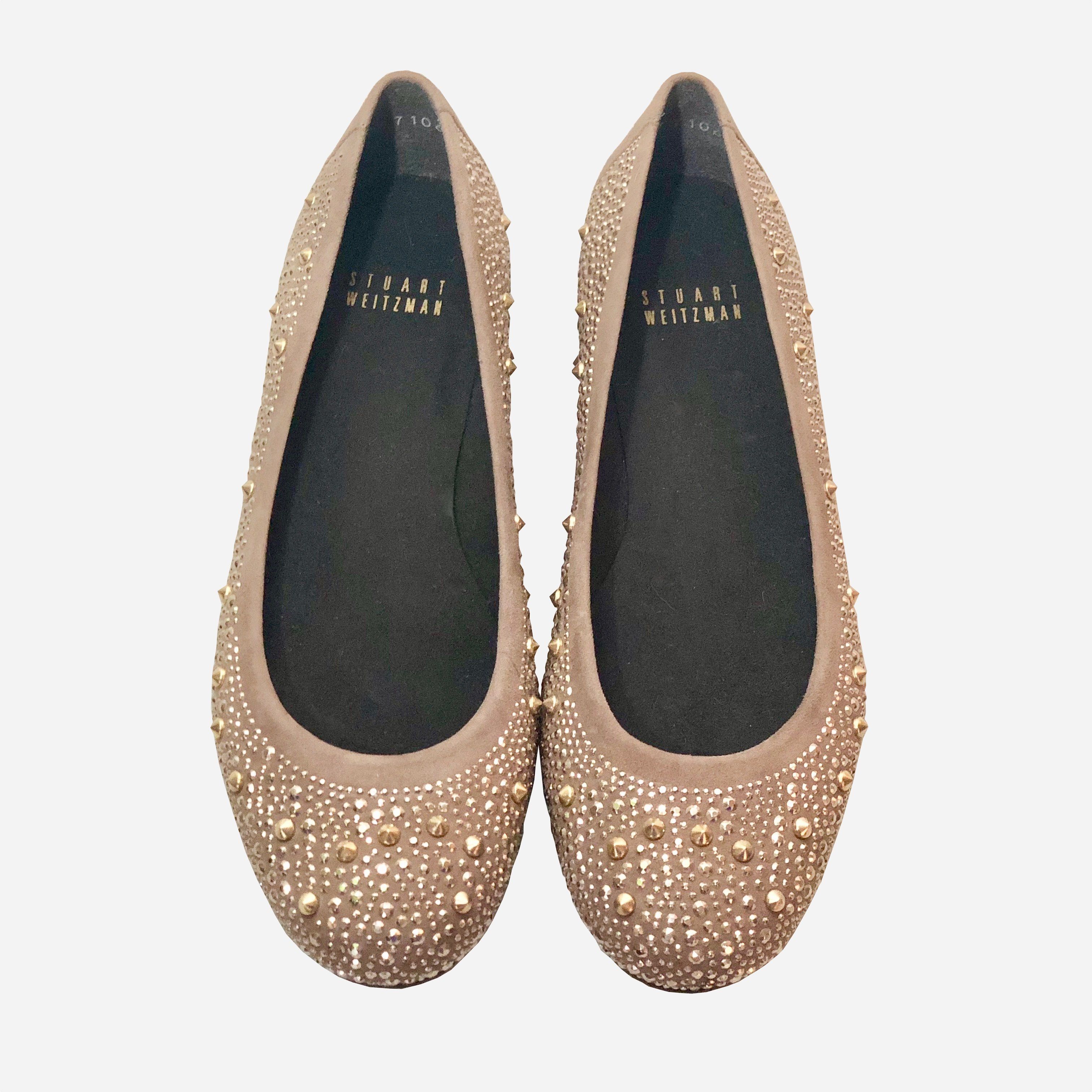 Stuart Weitzman Tan Rhinestone Studded stuart weitzman studded jelly flat sandals