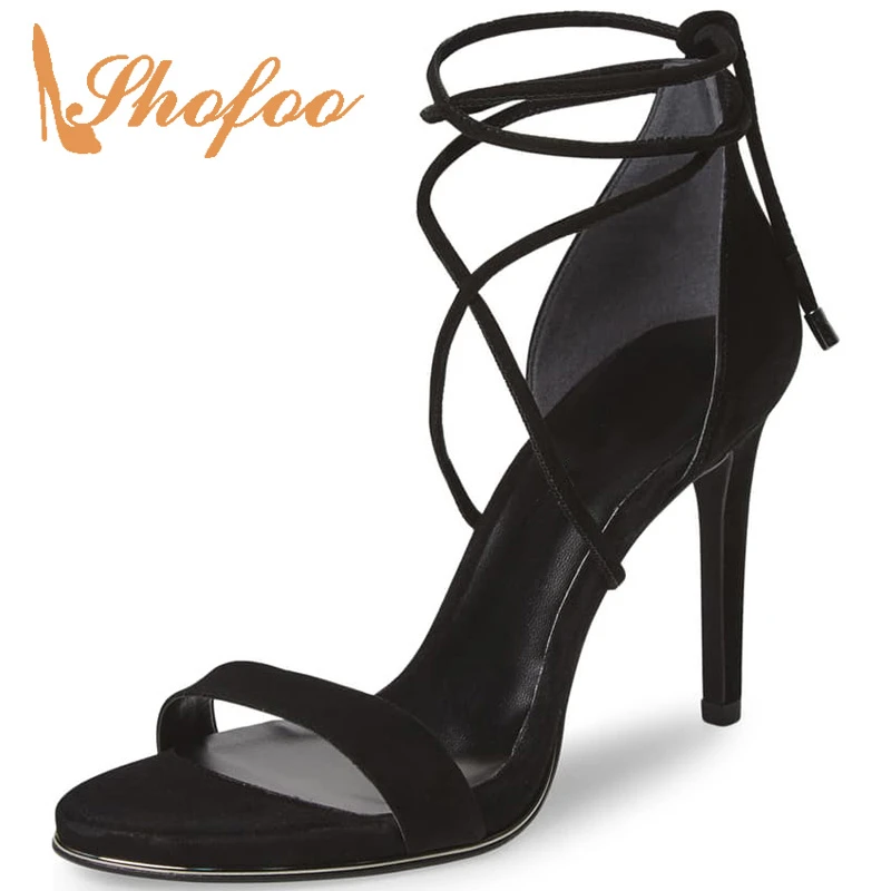 Strappy Sandals HEELS Shoes black lace up heels size 11