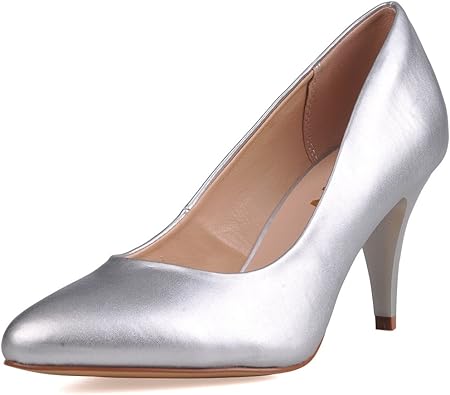 Pumps Comfort Closed Toe Slip amazon silver low heel shoes