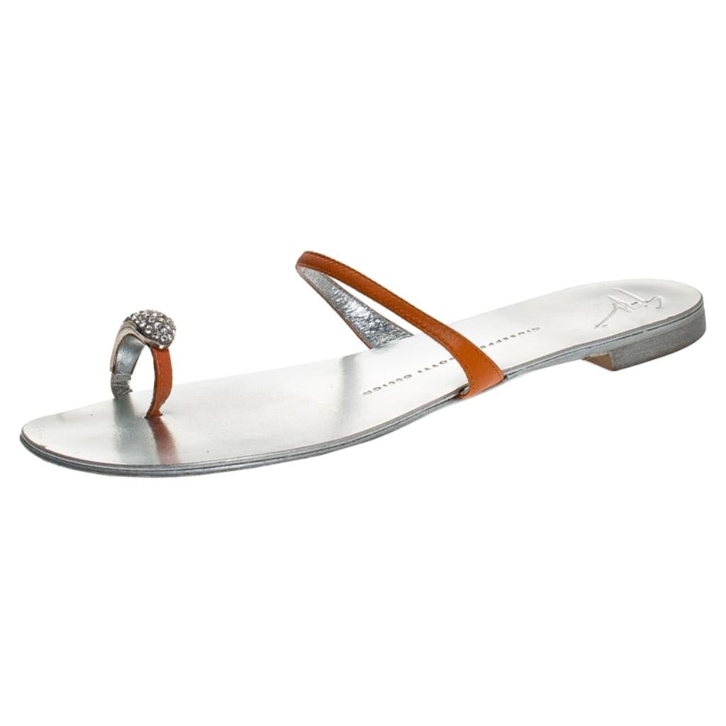 Giuseppe Zanotti Orange Leather Crystal crystal toe ring sandals