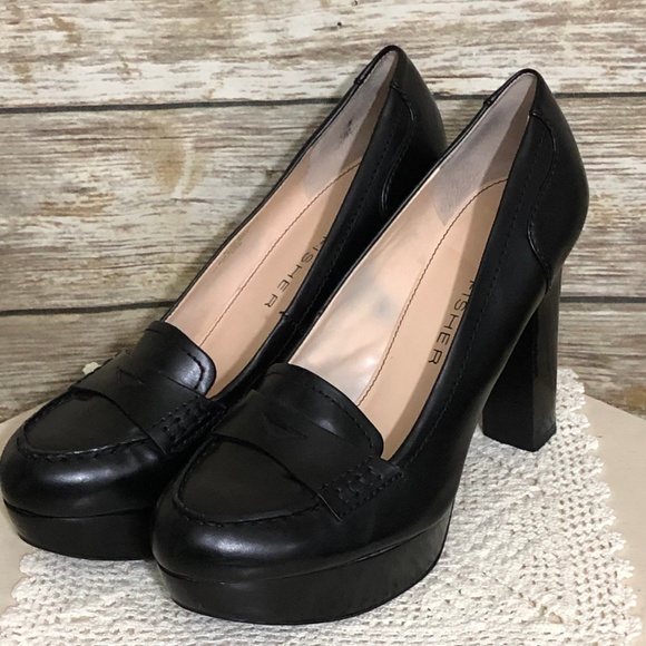 Heels, Platform high heel shoes high heel penny loafer black
