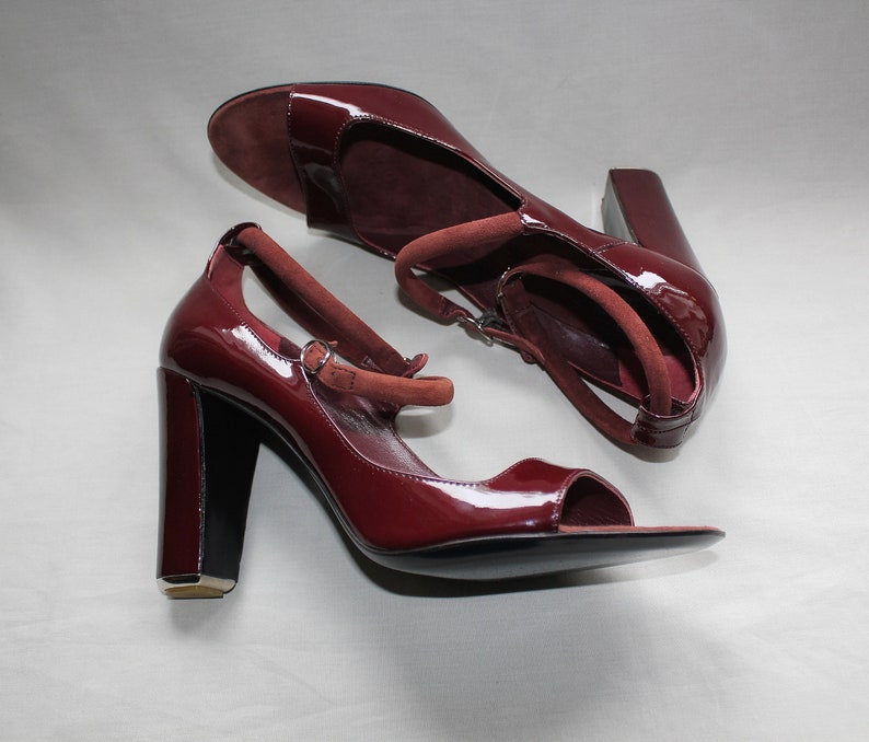 MALO burgundy patent leather strappy burgundy strappy shoes