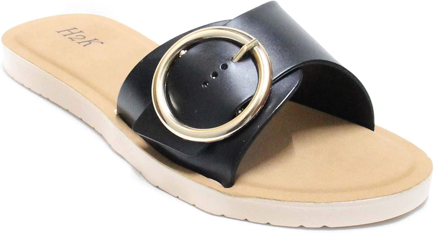 H2K Womens Open Toe Ring Buckle Flat amazon fancy sandals