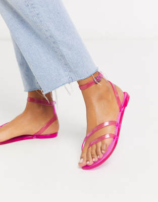 ASOS DESIGN Fluke asymetric jelly flat neon pink jelly sandals
