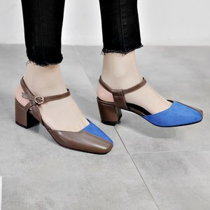 Women's Ankle Strap Block Mid Heels square toe pumps