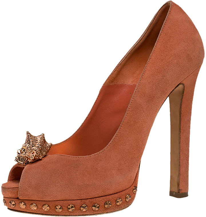 Alexander McQueen Orange Suede Shell alexander mcqueen skull pumps