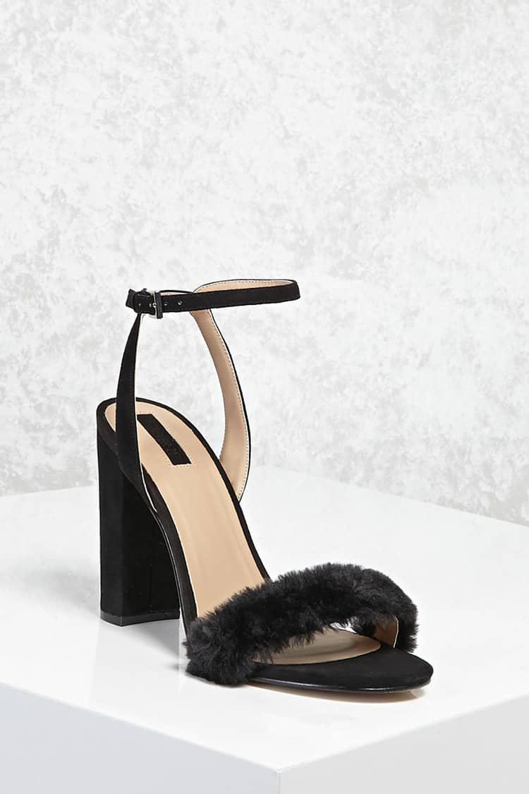 Forever 21 Faux Fur Ankle-strap Heels