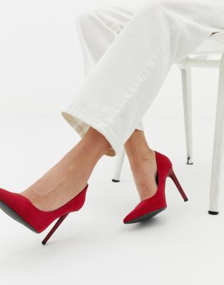 Bershka pointed court shoe in red | ASOS asos red court shoes