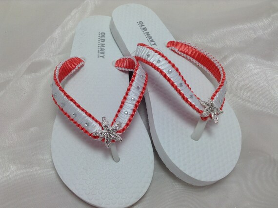 Flower Girl Starfish White and Coral coral flip flops for wedding