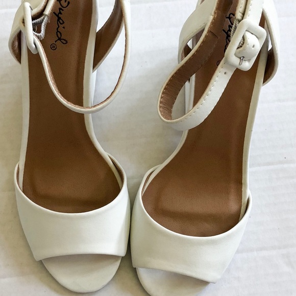White Square Block Heel Sandals Brand qupid block heel sandals