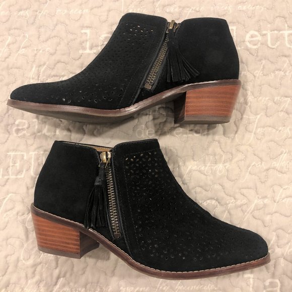 Daytona Black Leather Laser Cut Booties vionic joy daytona