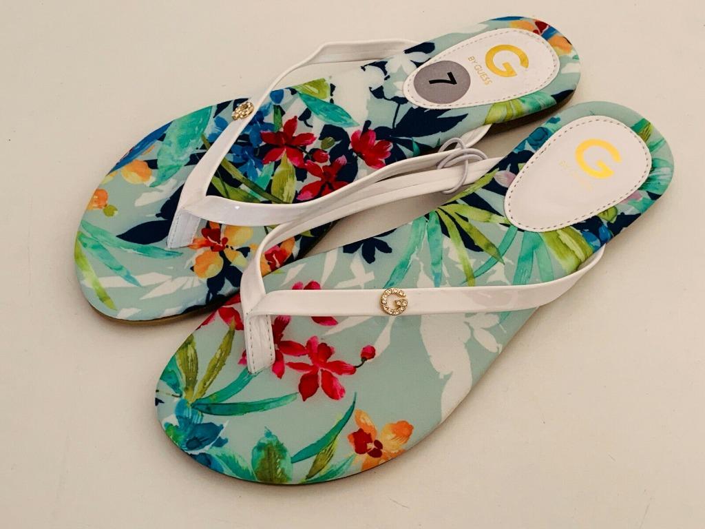 BLUE WHITE FLORAL PRINT SANDALS SLIPPER the bay guess shoes