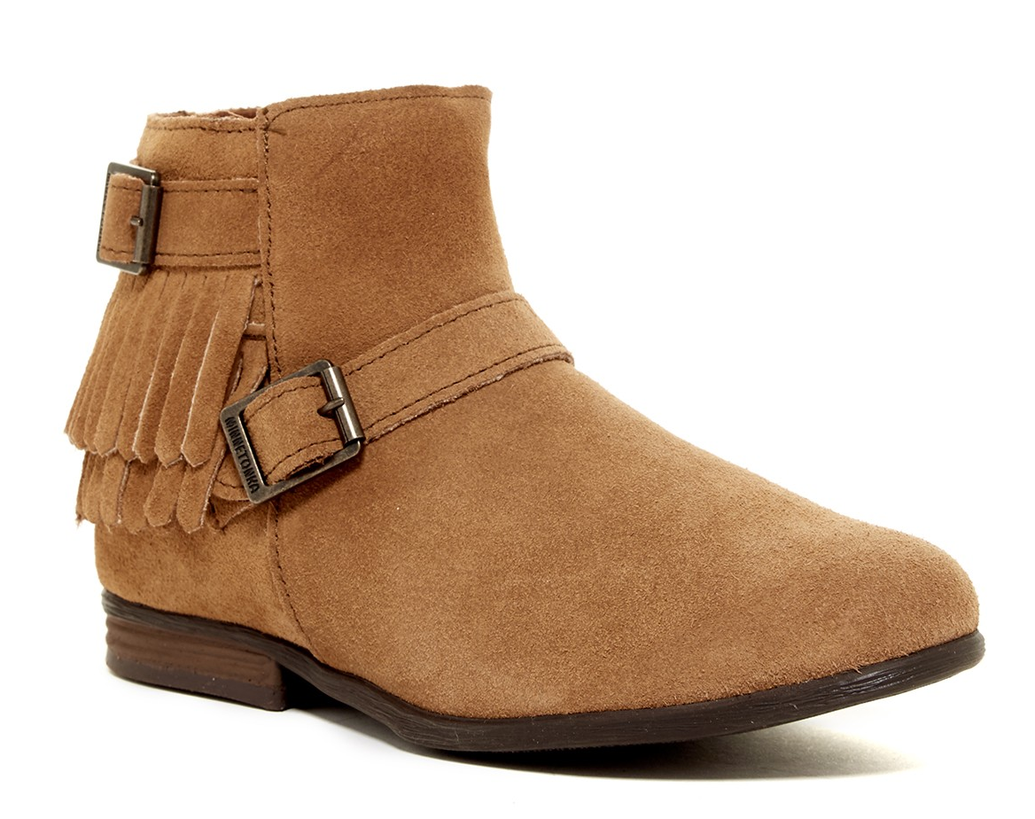 Minnetonka Suede Double-Fringe Bootie