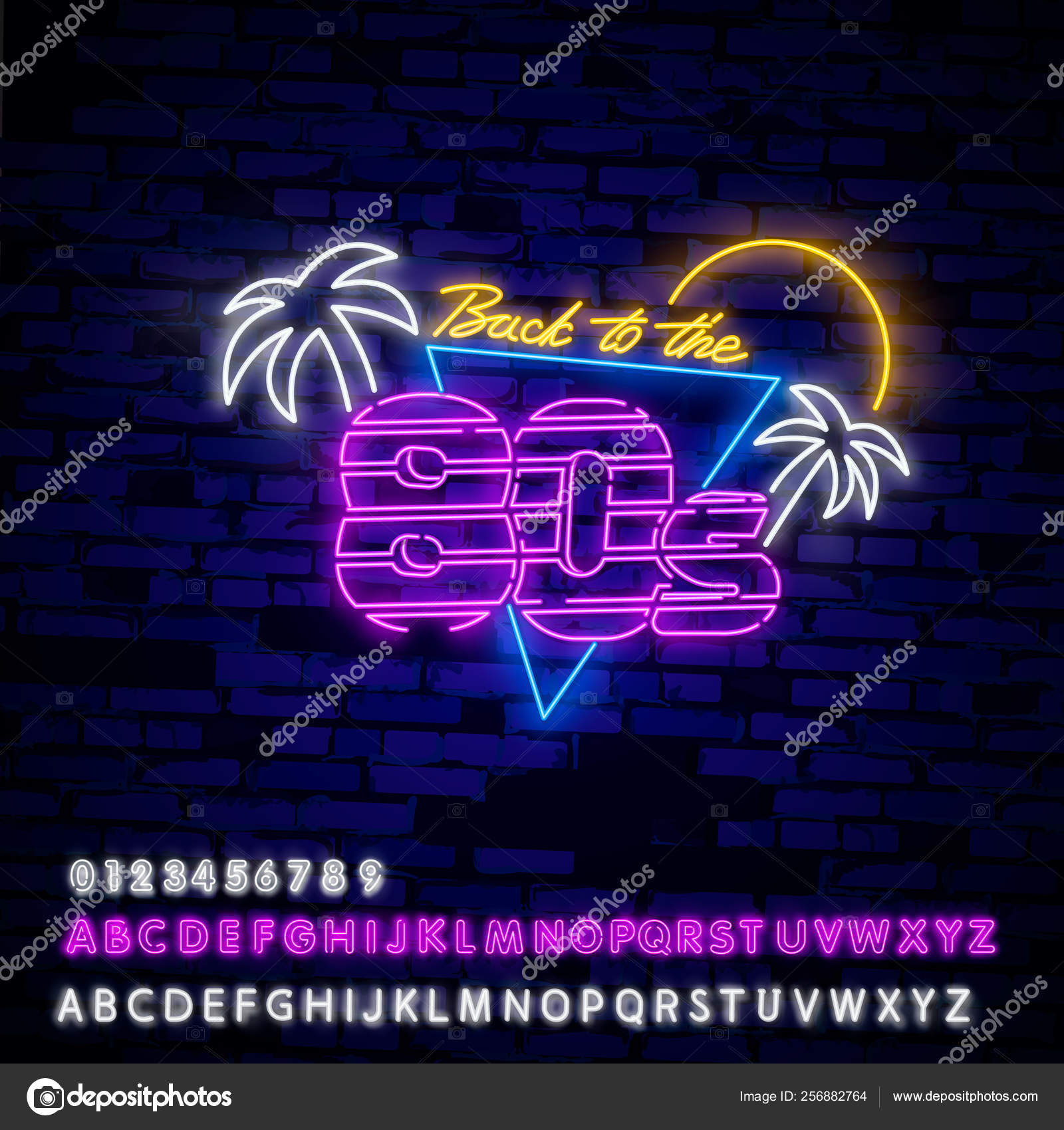 80s neon sign vector. 80 s Retro style 80's neon style