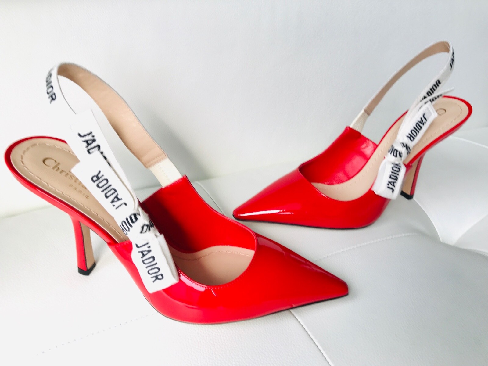 DIOR J'ADIOR RED PATENT CALF \u0026 RIBBON red slingback heels