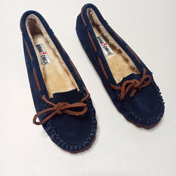 minnetonka navy blue moccasins