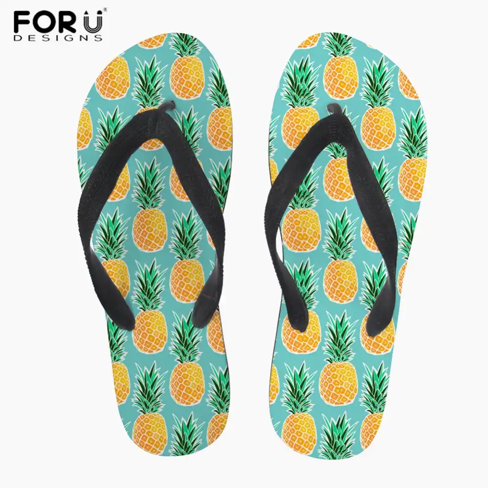 FORUDESIGNS Flip Flops Women Summer yellow box pineapple flip flops
