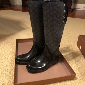 Nwt Black Rubber Knee High Boots Wlaces rubber knee high boots