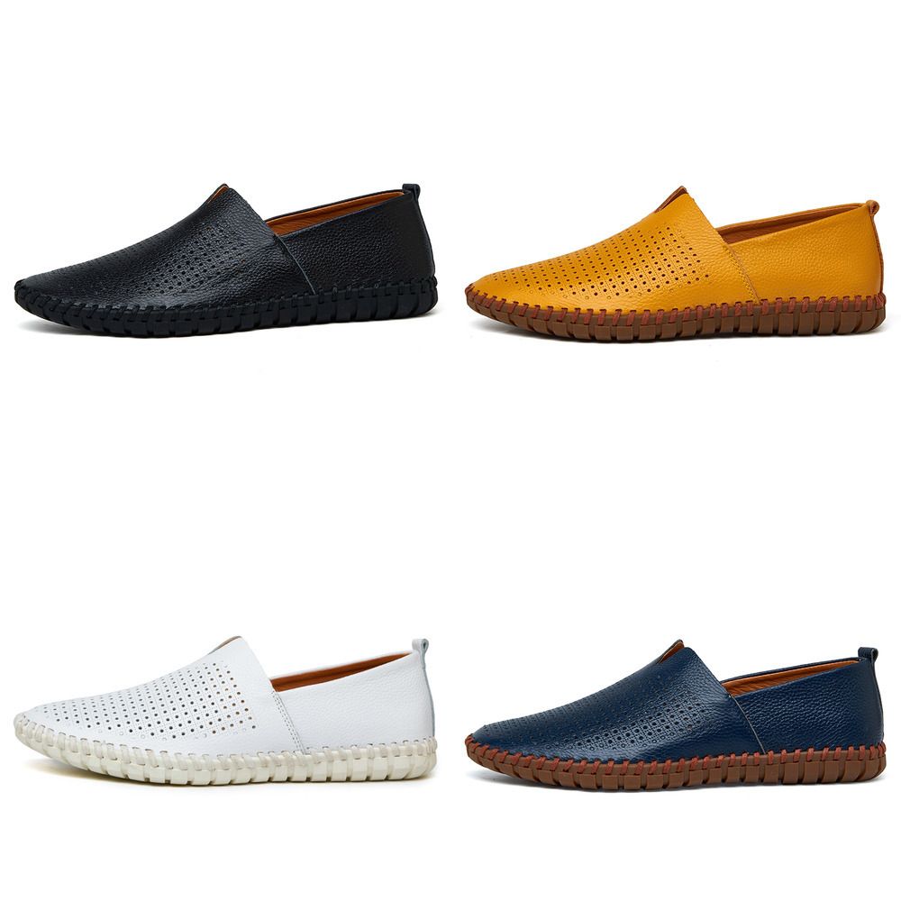 Leather Men Shoes Summer Breathable summer driving shoes