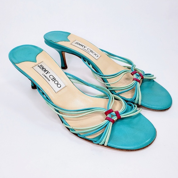 Aqua Colored Leather Heeled Sandals 65 aqua colored sandals