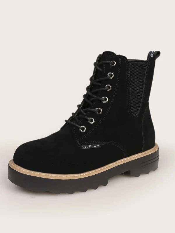 Black Faux Leather Lace Up Combat Boots