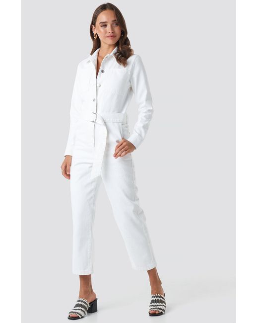 NA-KD Waist Belt Denim Jumpsuit White waist belt denim jumpsuit