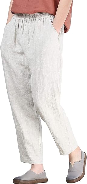 Mallimoda Women's Linen Cropped tapered linen trousers ladies