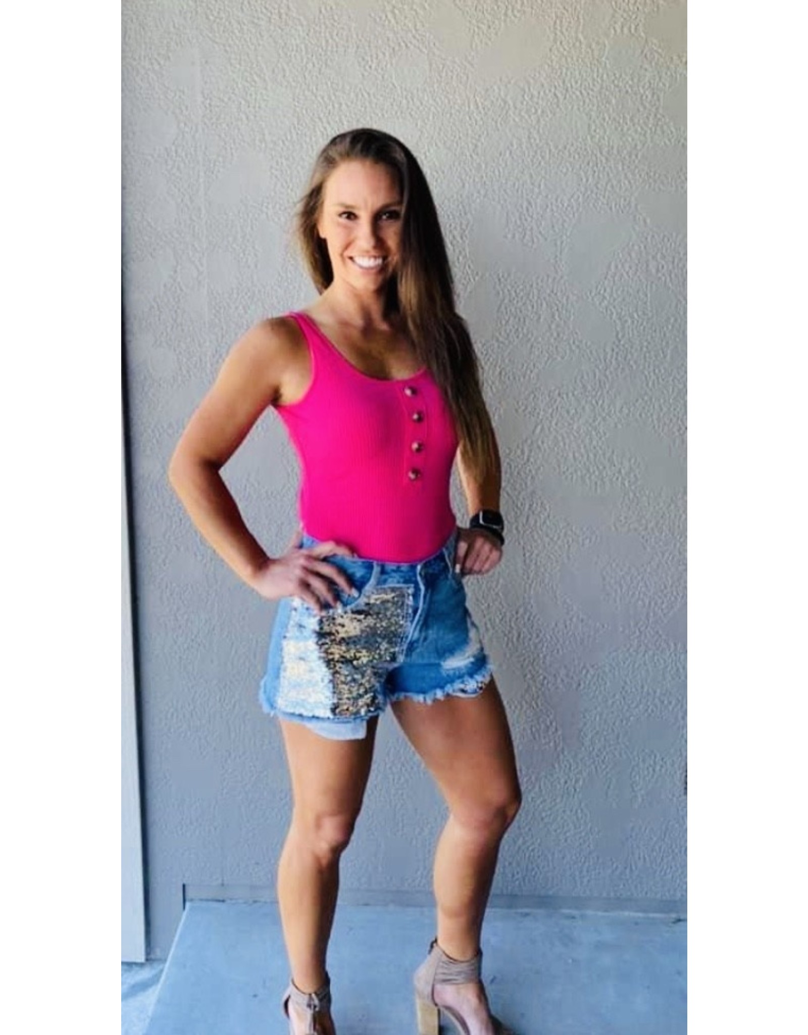 Sequin Denim Shorts - All rialed up llc- sequin denim shorts