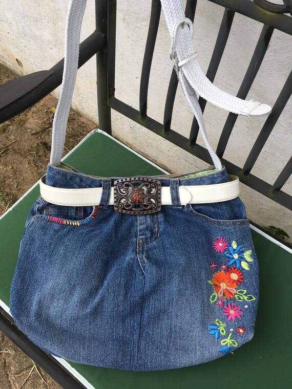 Denim jeans handbag multi-colored multi colored denim jeans