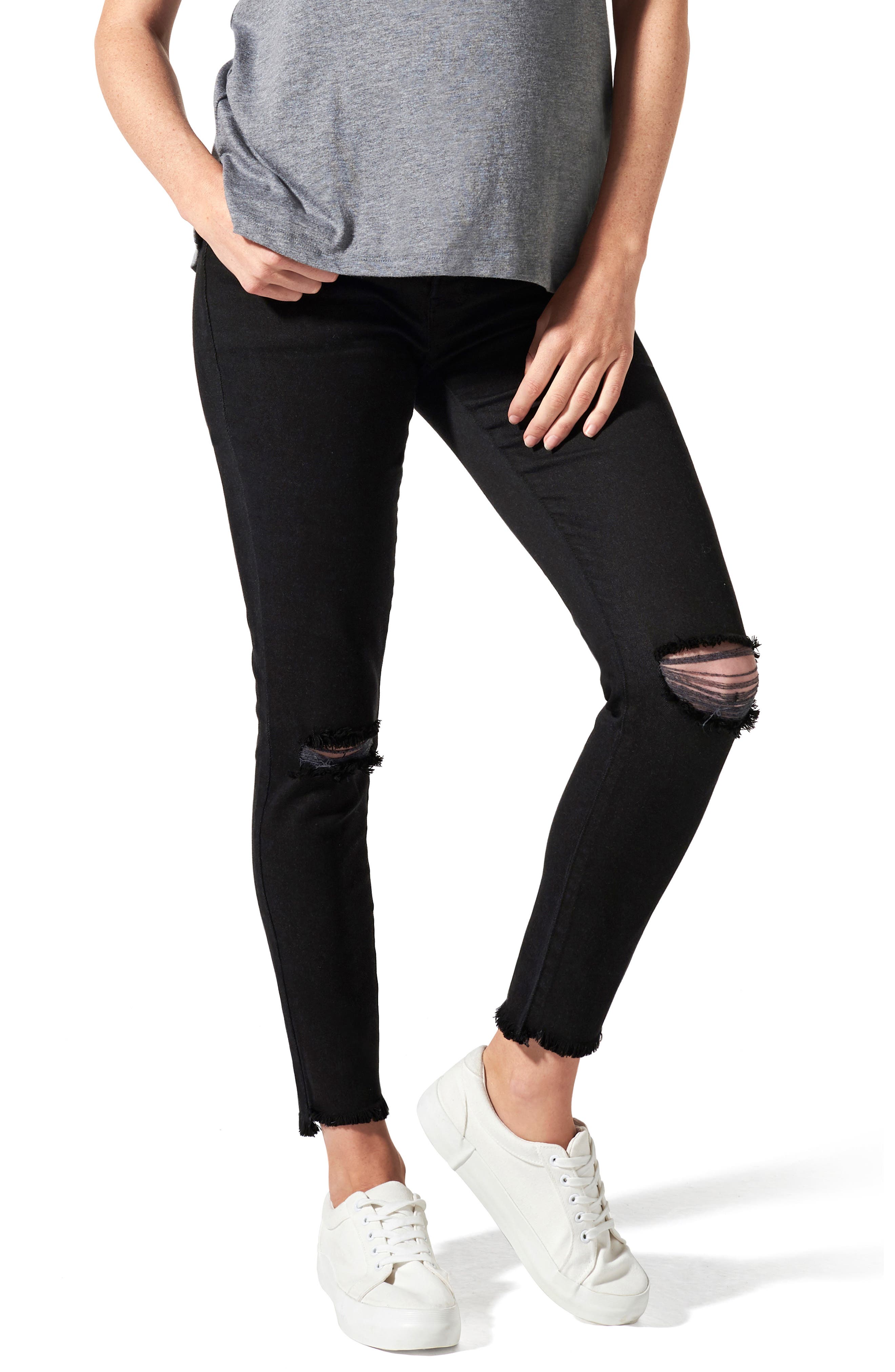 Women's Blanqi Ripped Belly Support black ripped jeans size 8