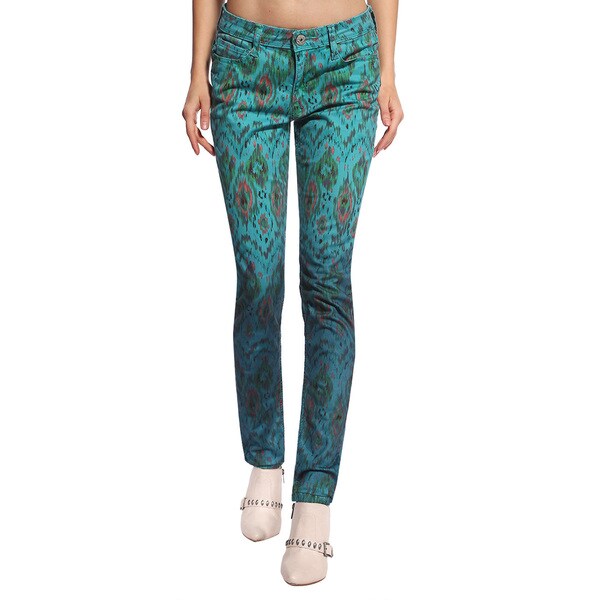 Anladia Women's Blue Peacock Pattern peacocks skinny jeans