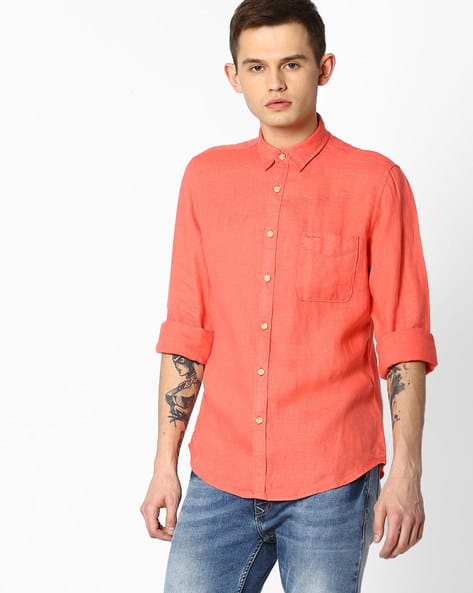 Buy Coral Orange Shirts for Men by Pepe orange denim shirt