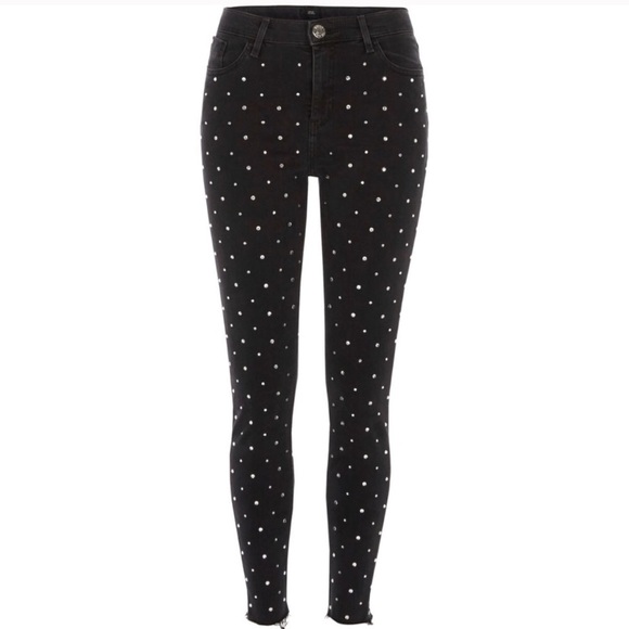 River Island Black Denim Crystal Jeans topshop crystal jeans