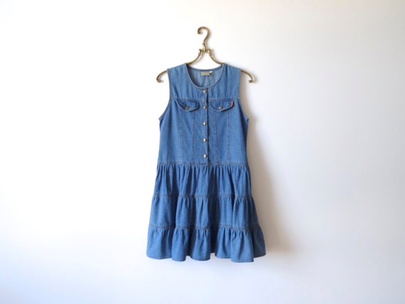 Blue Denim Dress Jumper Dress Button Up blue denim midi dress