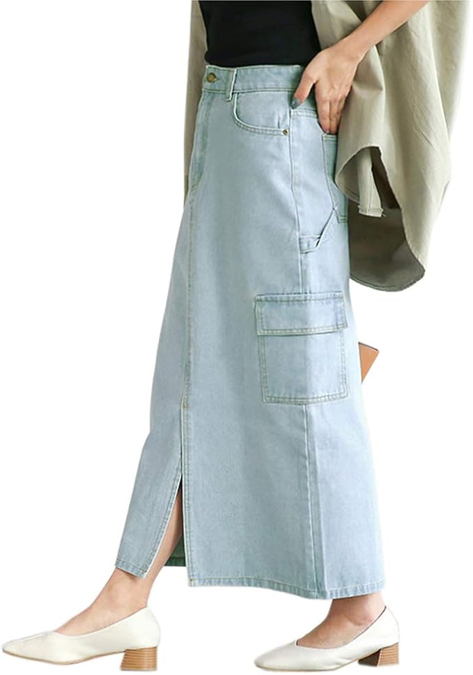 AILITI Women's Denim Long Skirt, Denim loose denim skirt