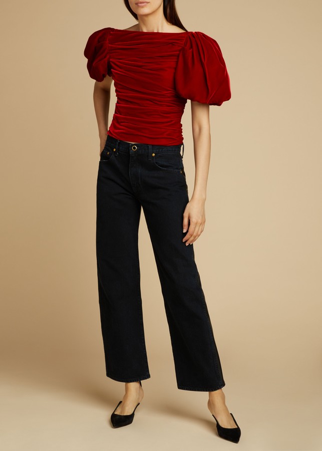 KHAITE The Kerrie Jean in Black Leather cotton jeans combo offer