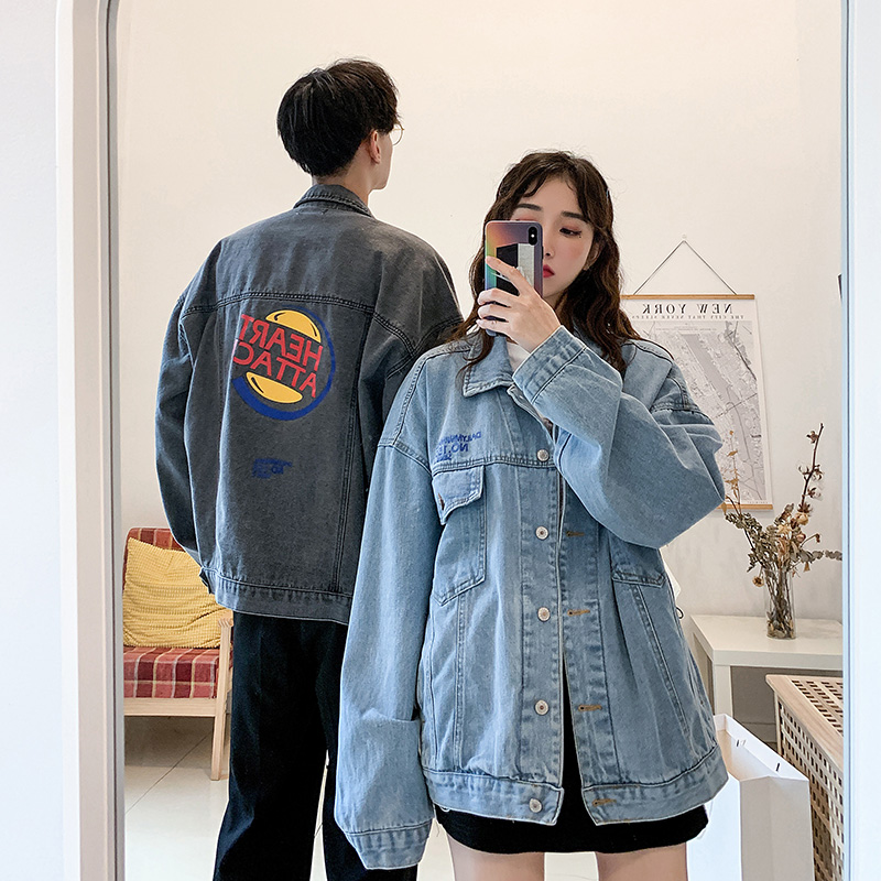 korean version net red denim jacket bf red wind denim