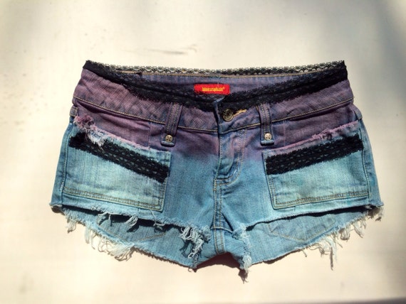 Sz 0 Blue to purple denim booty shorts blue jean booty shorts