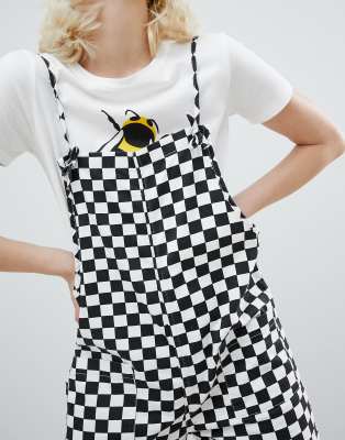 Monki Checker Board Dungarees | ASOS black and white checkered dungarees