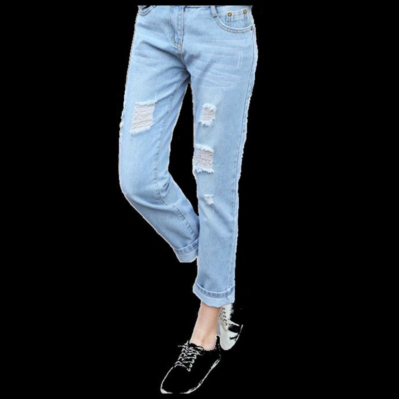 2020 Hole Ripped Jeans Women Thick ripped jeans at ankle