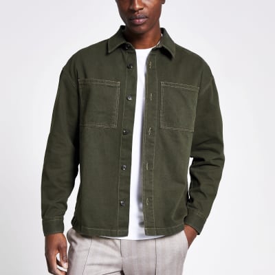 Khaki button front boxy fit overshirt river island khaki jeans