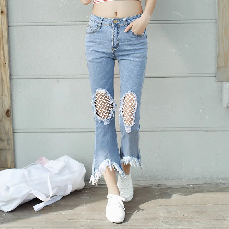 Bell Bottom Jeans for Women Ripped High torn bottom jeans