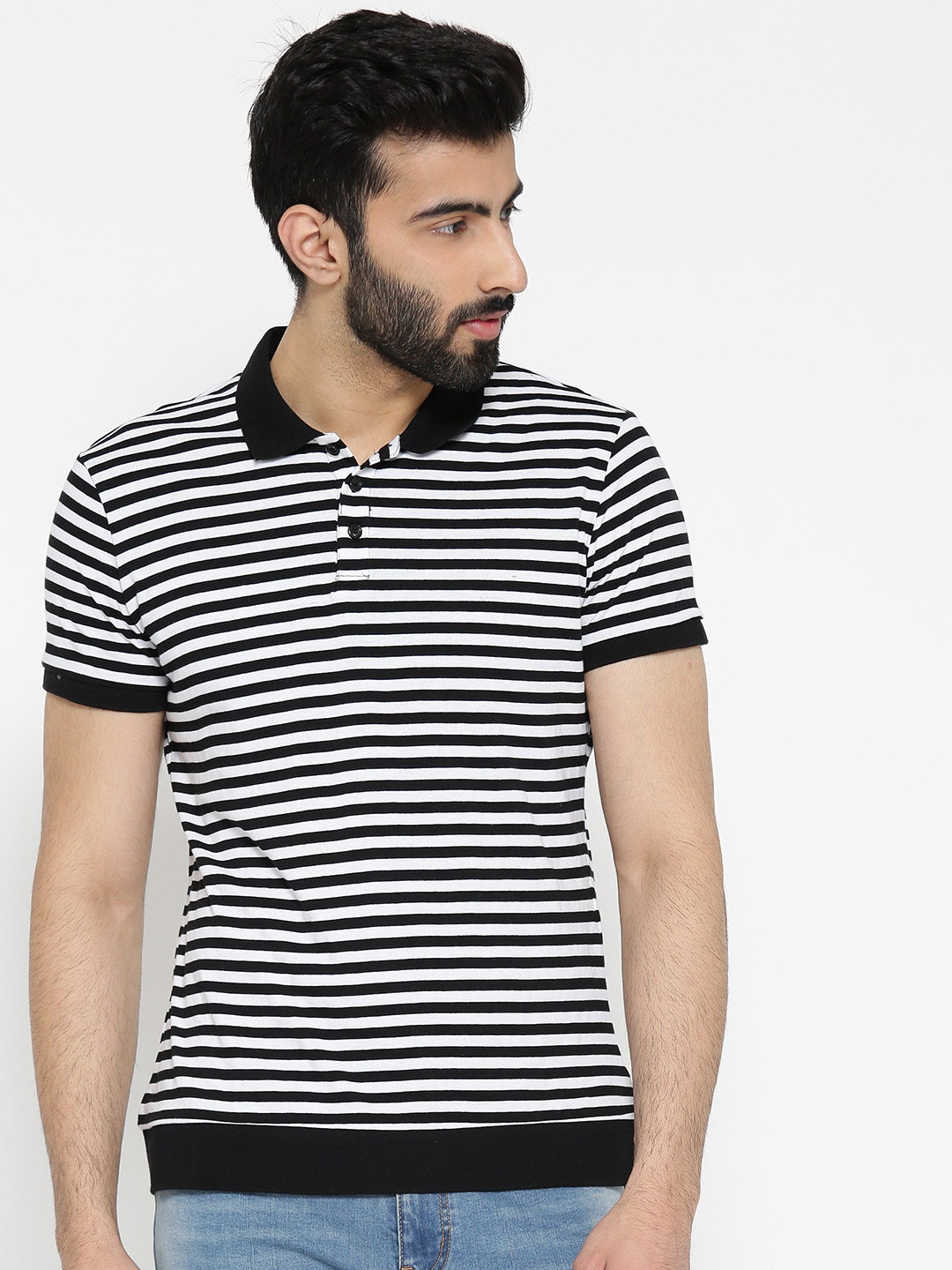 Men Black \u0026 White Striped Polo Collar black and white striped jeans forever 21