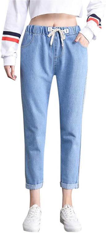 Yonglan Women Comfortable Casual High elasticated waist jeans womens uk