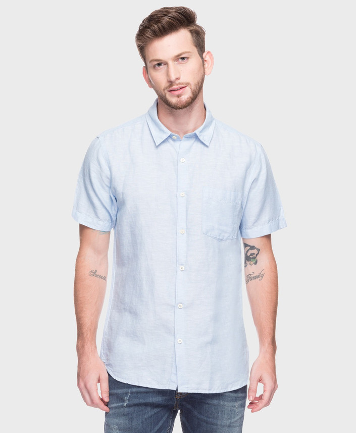 DJ\u0026C by fbb Men Solid Casual Blue Shirt fbb men's jeans