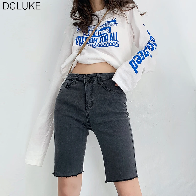 DGLUKE Summer Knee Length Shorts Jeans black jean biker shorts